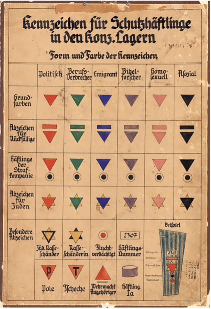 Figuur 1 Nazi Government, Kennzeichen für Schutzhäftlinge in den Konz. Lagern, Form und Farbe der Kennzeichen, 1940, collectie Vrijheidsmuseum Groesbeek