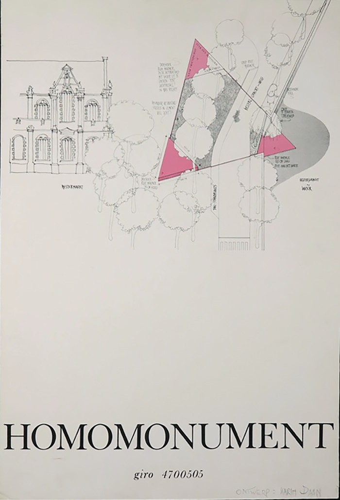 Figuur 6 Karin Daan, Poster met ontwerp Homomonument Westermarkt, 1980, in Stukken betreffende het voorzitterschap van de jury stichting homomonument, Stadsarchief Amsterdam